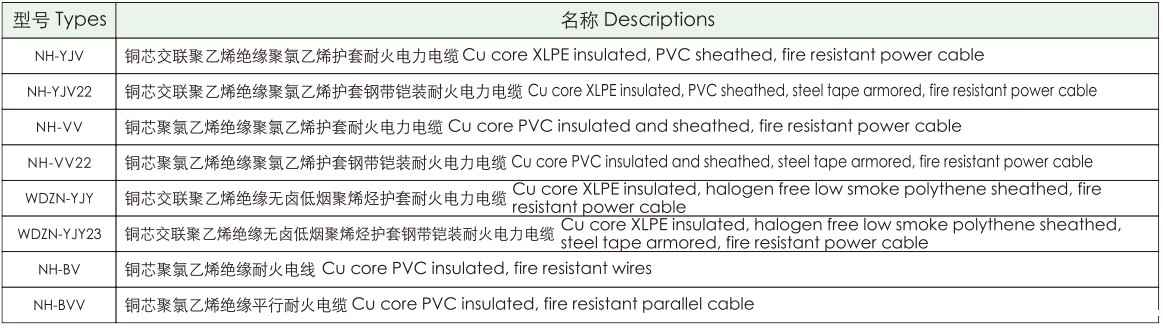 产品说明耐火电缆就是在火焰燃烧情况下能够保持一定时间安全运行的电缆。耐火电缆适用于高层建筑、油田、电站、电厂、矿山、化工、地铁等要求防火安全条件高的场合,又是应急电源、消防泵、电梯、通讯信号系统的理想电缆。执行标准耐火电缆产品执行国家GB/T12706.1-2008、GA306.2-2007标准。耐火特性符合国家标准GB/T19216.21-2003和lEC60331:1999。使用特性额定电...